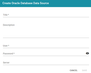 - Click the Add Data Source button, select Database, and then select Oracle Database Data Source. The Create screen is displayed:
