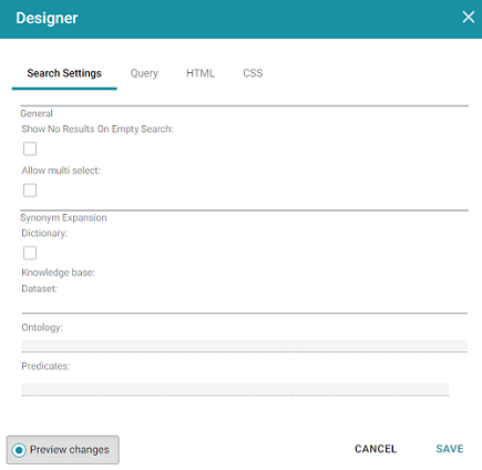 - In the Designer, change the optional search settings as needed. The list below describes each option: