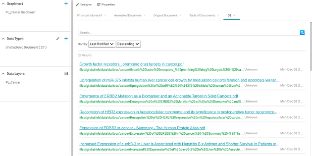 - On the Graphmarts screen, click the name of the graphmart that contains the unstructured data. Graph Studio displays the graphmart overview screen.