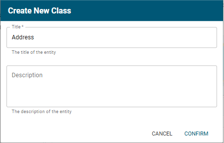 The Create New Class dialog opens. Specify a title in the Title field and include an optional description in the Description field.
