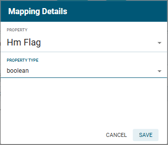 Then double-click on the Target field name. The Mapping Details screen opens. Change Property Type from string to boolean. Click Save.