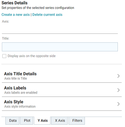 | Axis | The Axis and Title settings are populated with the Value from the Data tab. If multiple axes exist, you can selected a different value to use for the Y axis. |